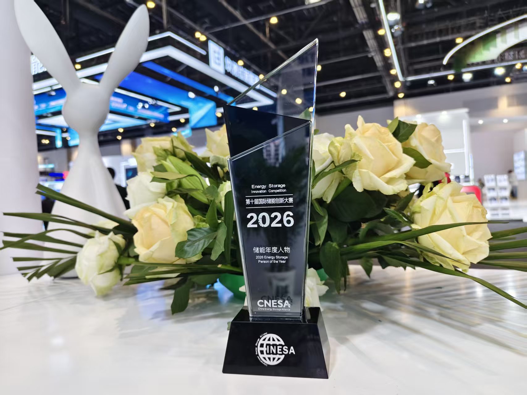 在欢迎晚宴暨第十届国际储能创新大赛颁奖典礼上,姜新宇先生被授予“储能年度人物”荣誉称号。该奖项旨在表彰为储能产业规模化发展、技术突破及市场拓展作出突出贡献的领军人物,是行业对企业家战略眼光与实干成果的高度认可。