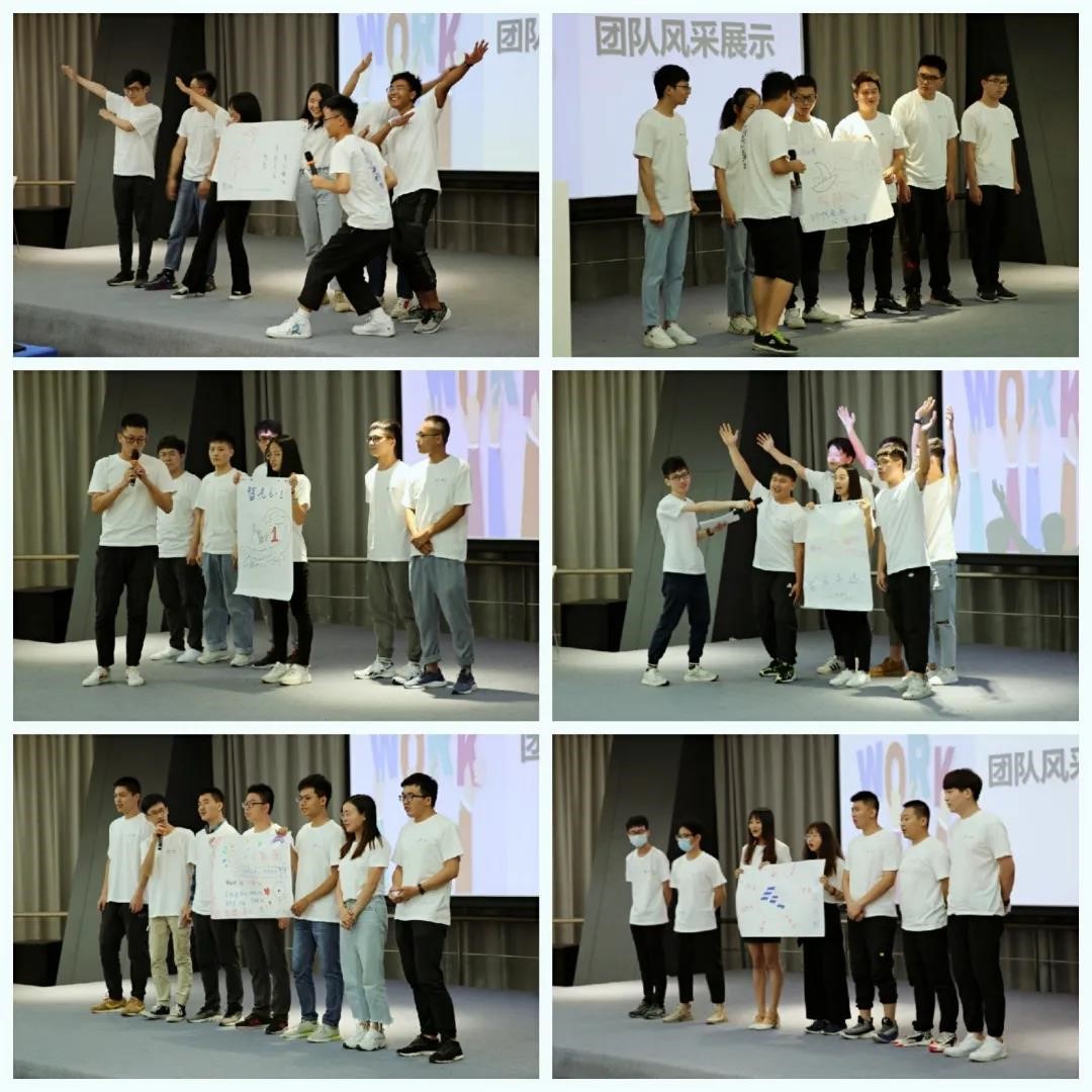 团队展示——在培训开始前,采用小组PK” 的方式划分小组,通过小组进行团队风采展示,使各位学员打破隔阂并融入整个团队。经过了各个小组的通力合作,产生了各自的小组长、组名、口号、以及logo,展现了新员工积极向上的团队风采。