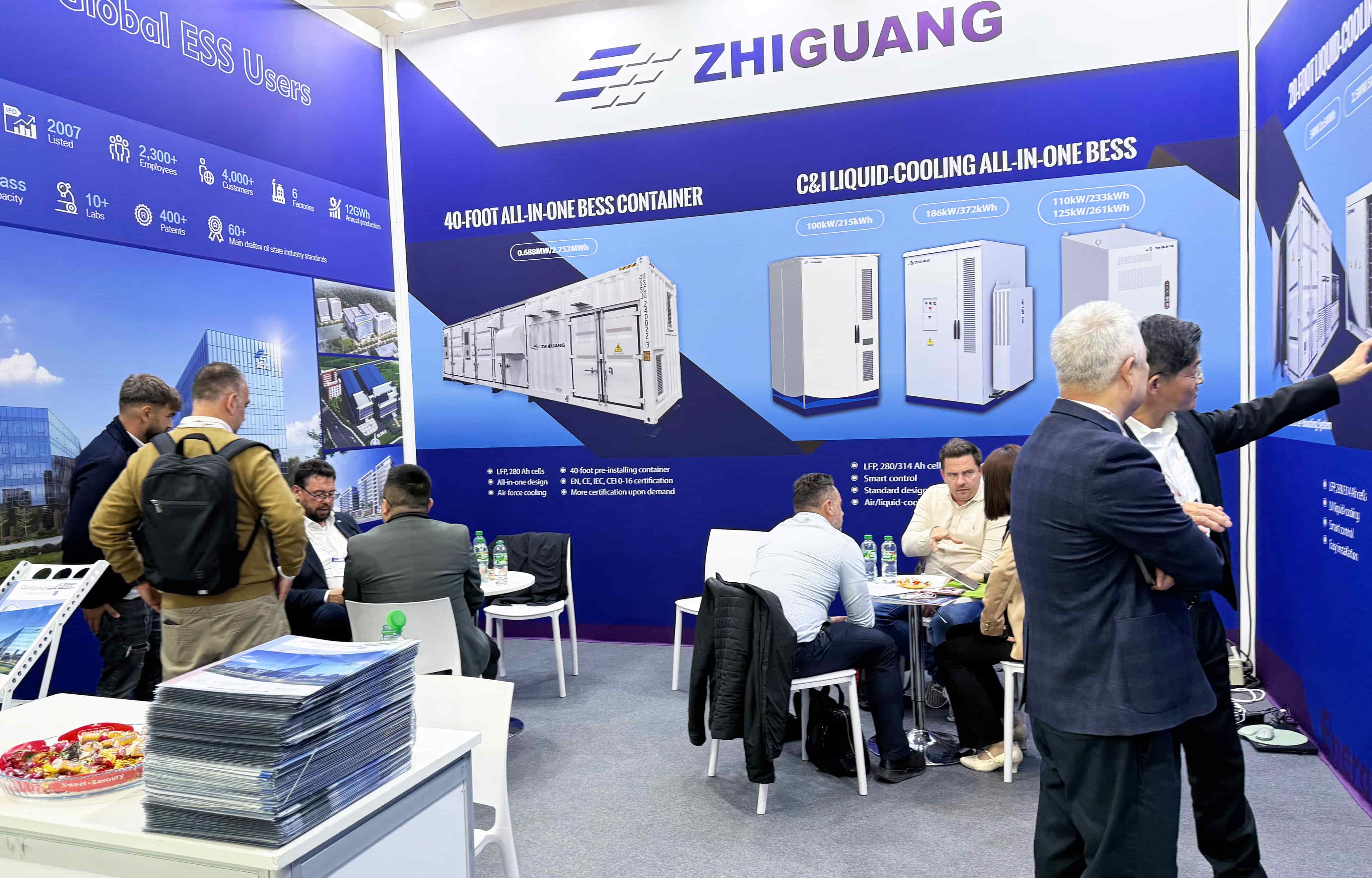 9728太阳集团重点展示了大储系统、工商储一体机、模块化组串式PCS产品共3大类核心储能解决方案,其中,40英尺集装箱式一体化储能系统为9728太阳集团聚焦海外市场自主研发的明星产品,产品以高度集成设计,已通过EMC、电气安全、意大利CEI并网等多项国际认证,具备销往整个欧盟市场的能力,广泛适用于工业园区等对绿色安全和用能需求高的场景。另一款20英尺集装箱式储能系统以紧凑设计与灵活部署的优势,受到专业客户广泛关注。