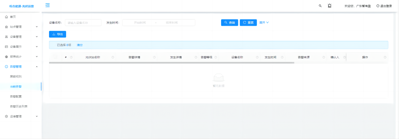 光伏运营系统按功能划分为综合数据大屏和电站管理两种平台展示,可分别通过web端和移动端同步访问。其中电站管理平台主要功能包括电站设备数据展示、告警管理、报表统计等。