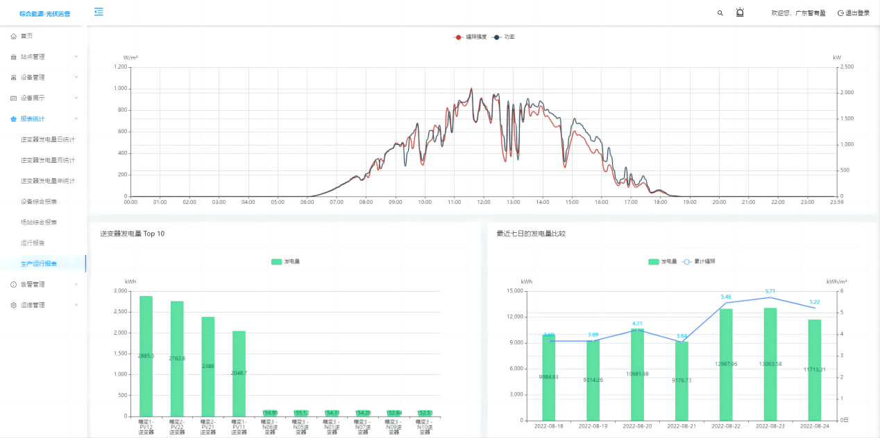 报表分析提供逆变器年、月、日发电量报表统计查询导出功能,逆变器、场站综合报表统计查询导出功能,场站生产运行报表统计查询导出功能。