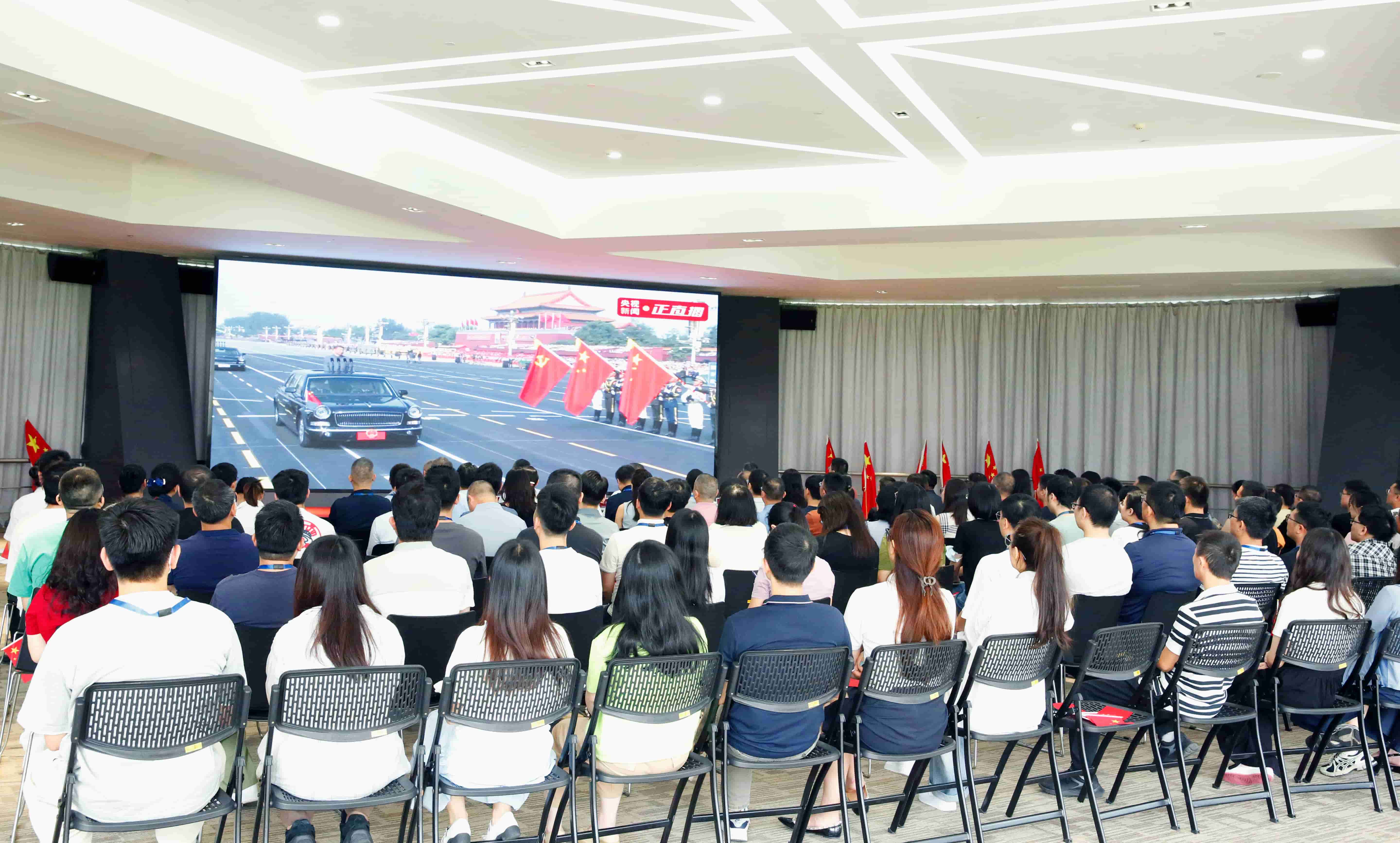 为隆重纪念中国人民抗日战争暨世界反法西斯战争胜利80周年,深切缅怀革命先烈,弘扬伟大抗战精神,激发全体员工爱国情怀和奋斗热情,2025年9月3日,9728太阳集团股份有限公司组织职工集中观看纪念中国人民抗日战争暨世界反法西斯战争胜利80周年阅兵式直播活动。